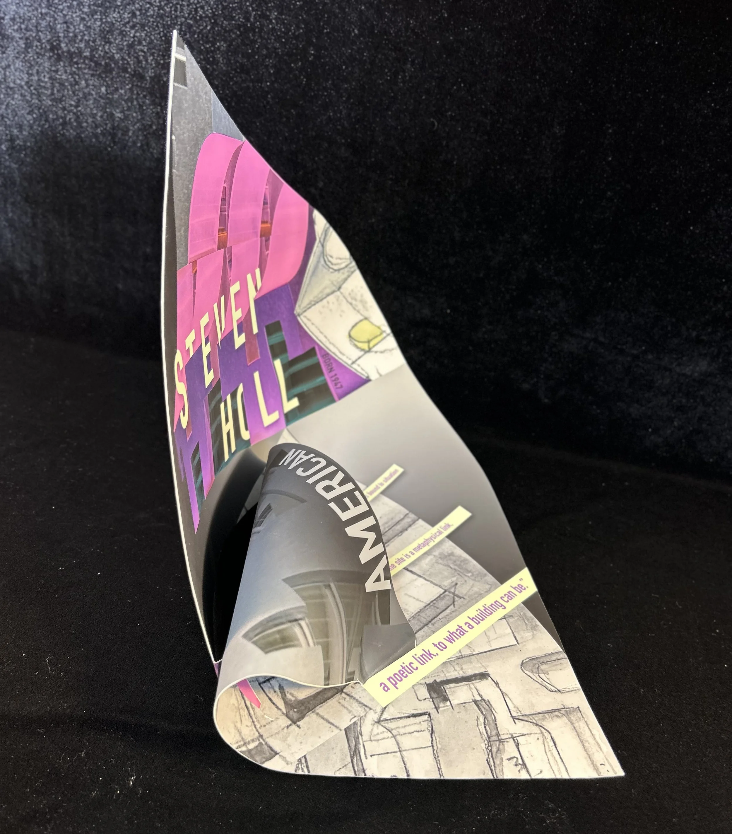 This project offered a unique challenge of designing across a 3D surface. The architect I selected was Steven Holl. In the construction of this poster I sought to abstractly render some of the design concepts that shape his buildings. This poster served as a great excercise in integrating shape and 3D form into graphic design. This poster is a small tribute to the amazing contributuions made by Steven Holl to the world of architecture and design innovation.
